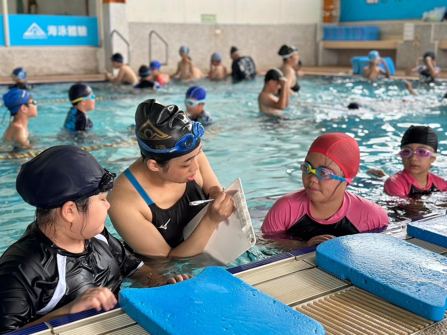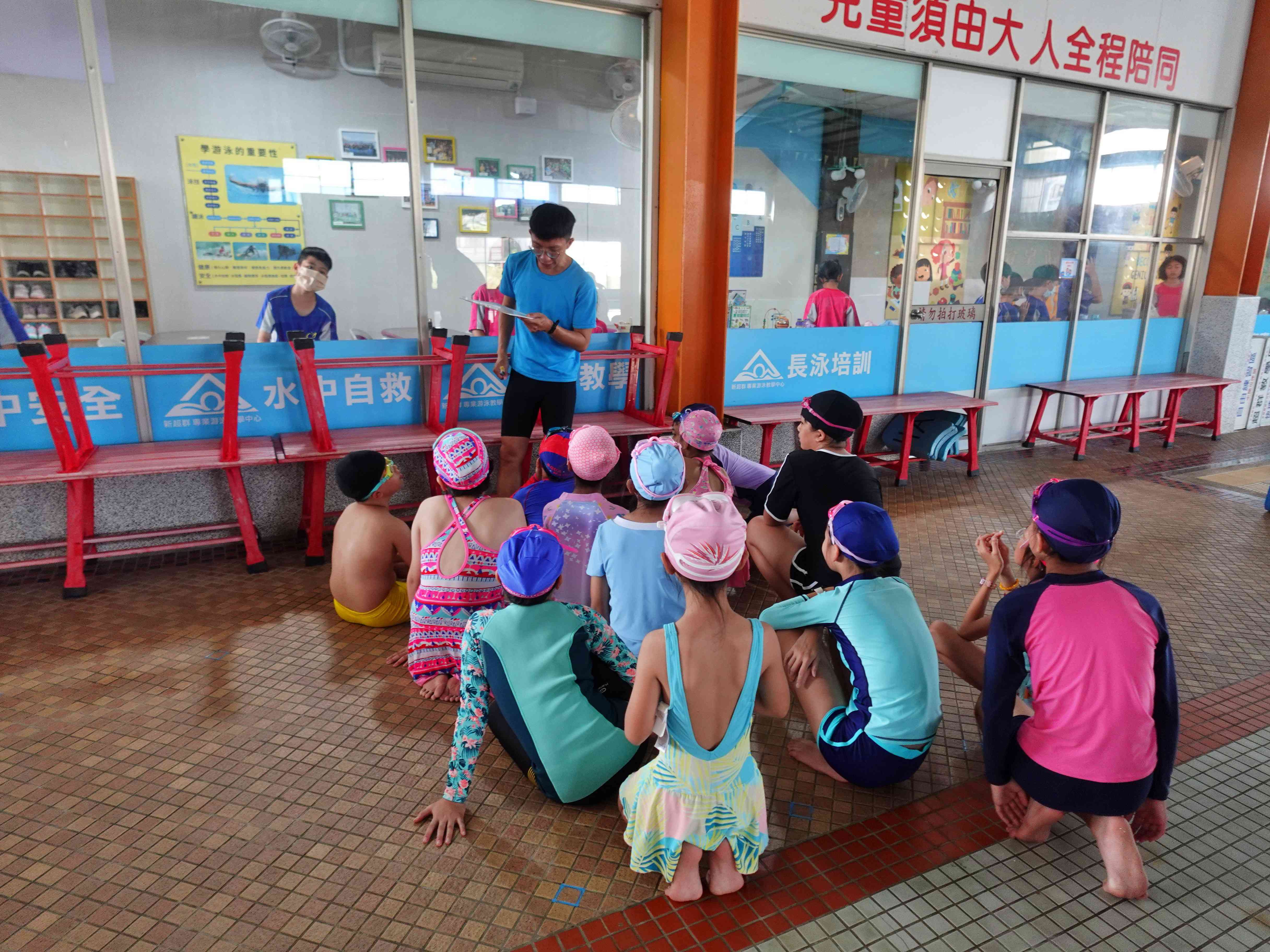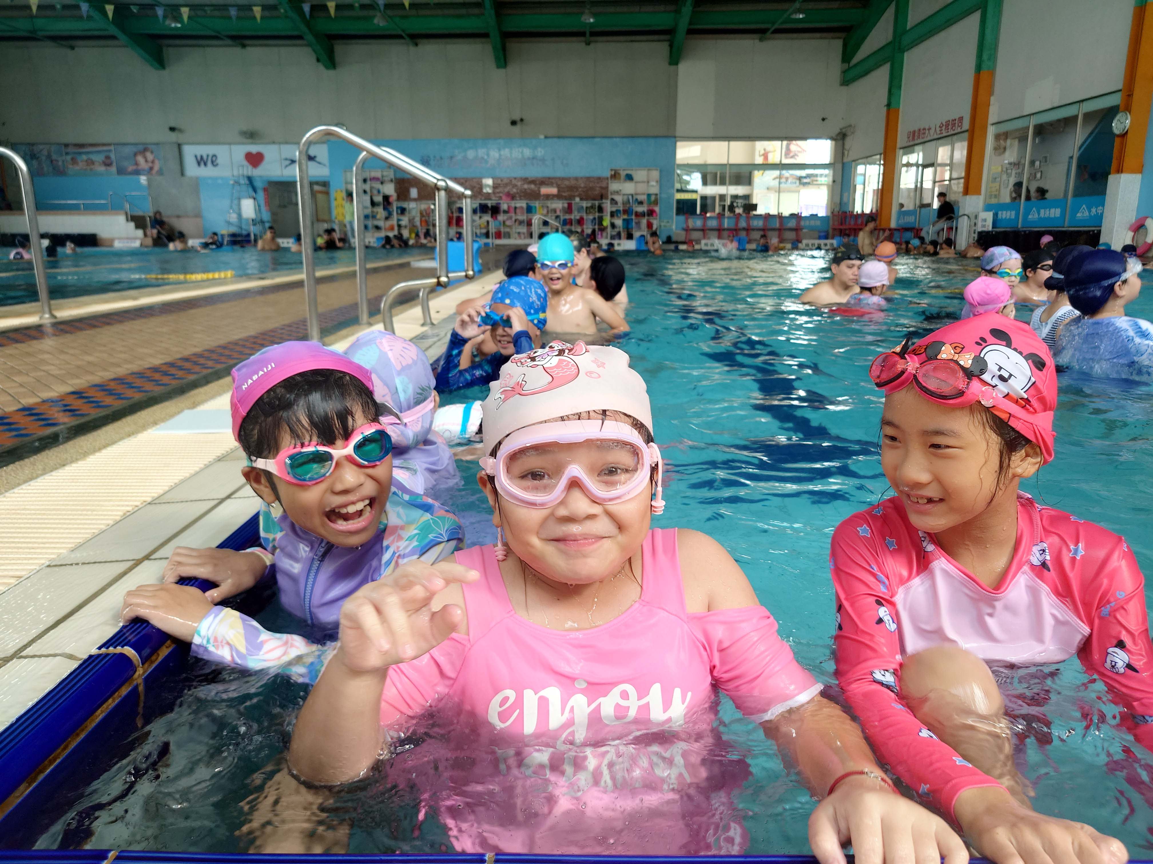 讓學生可以在專業教練的指導下學習游泳技能,水水編發現有很多小朋友一開始非常怕水,到第二堂課時,已經可以在水中玩起剪刀石頭布