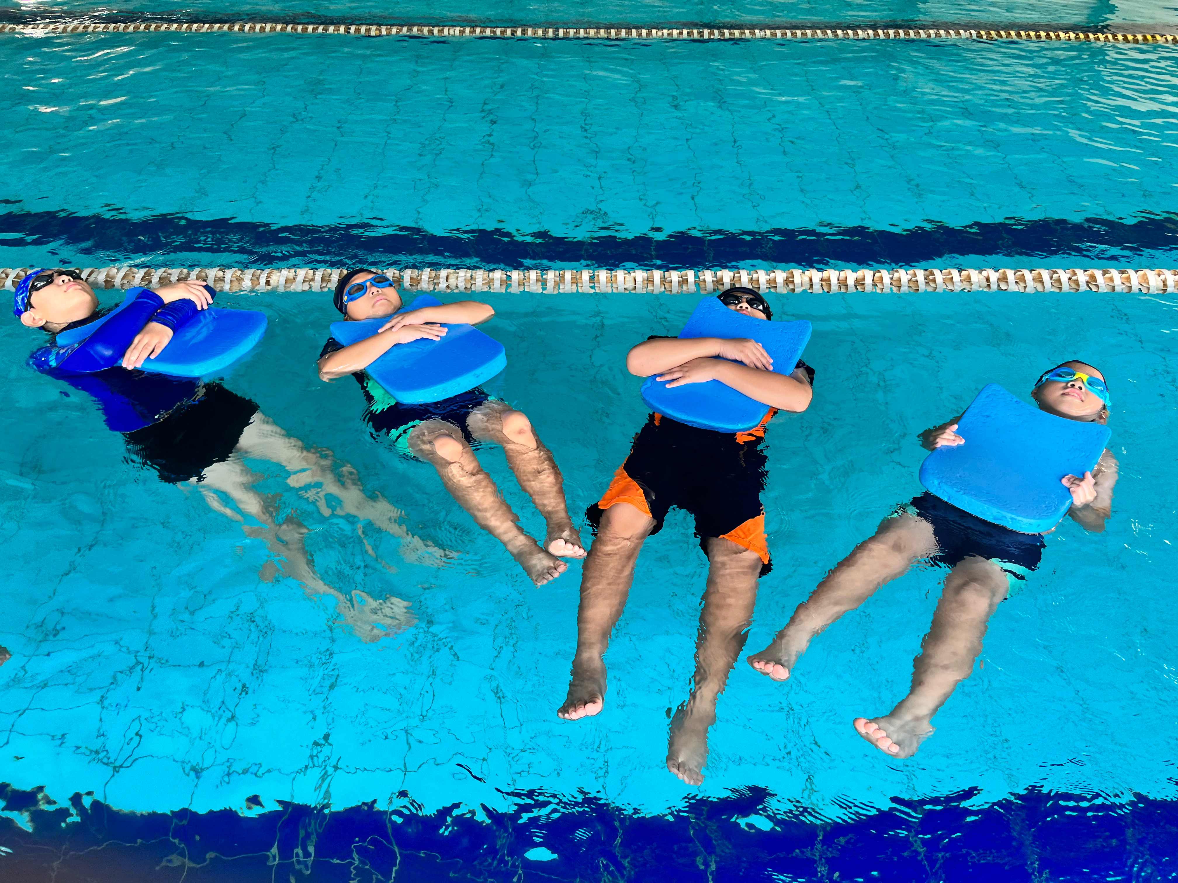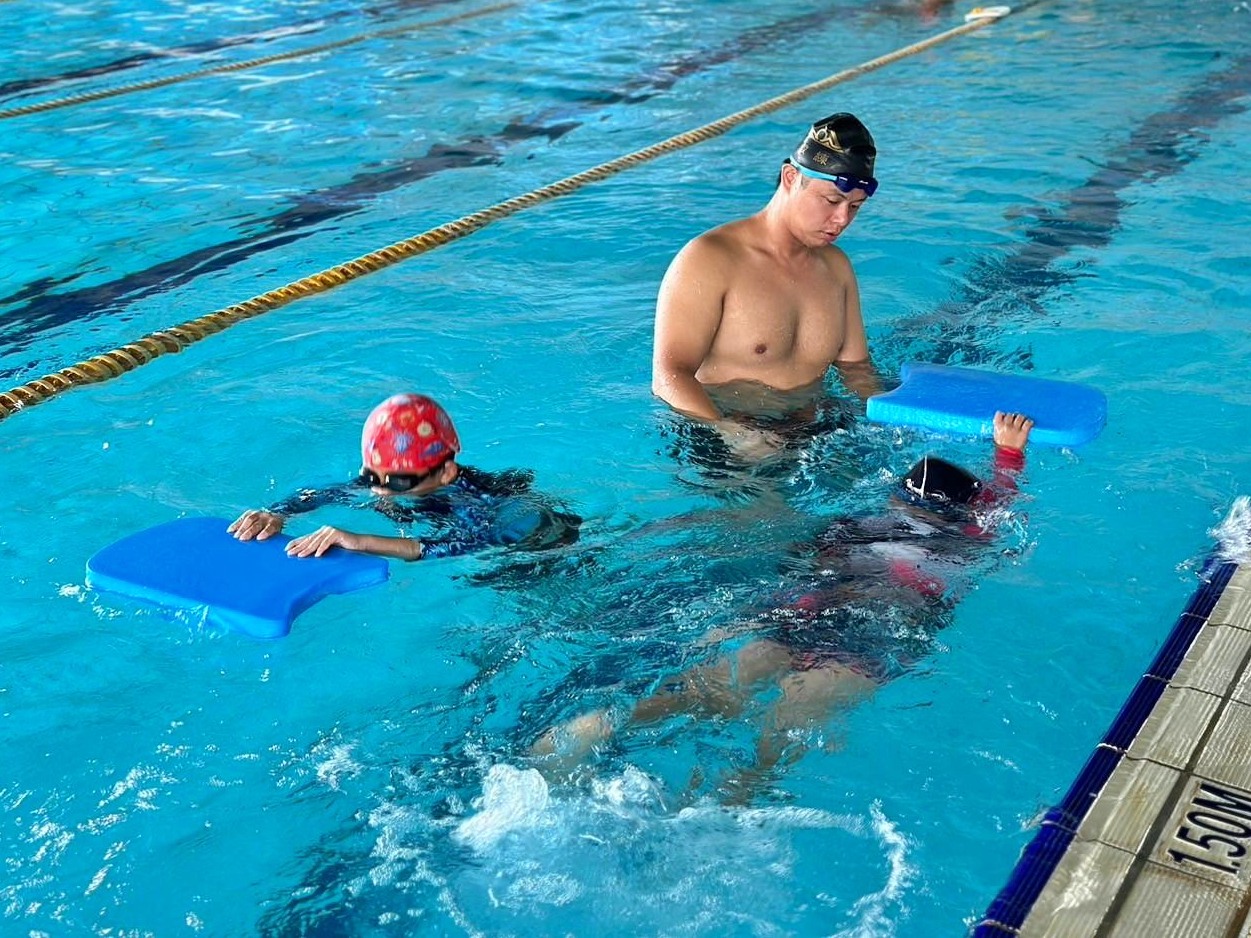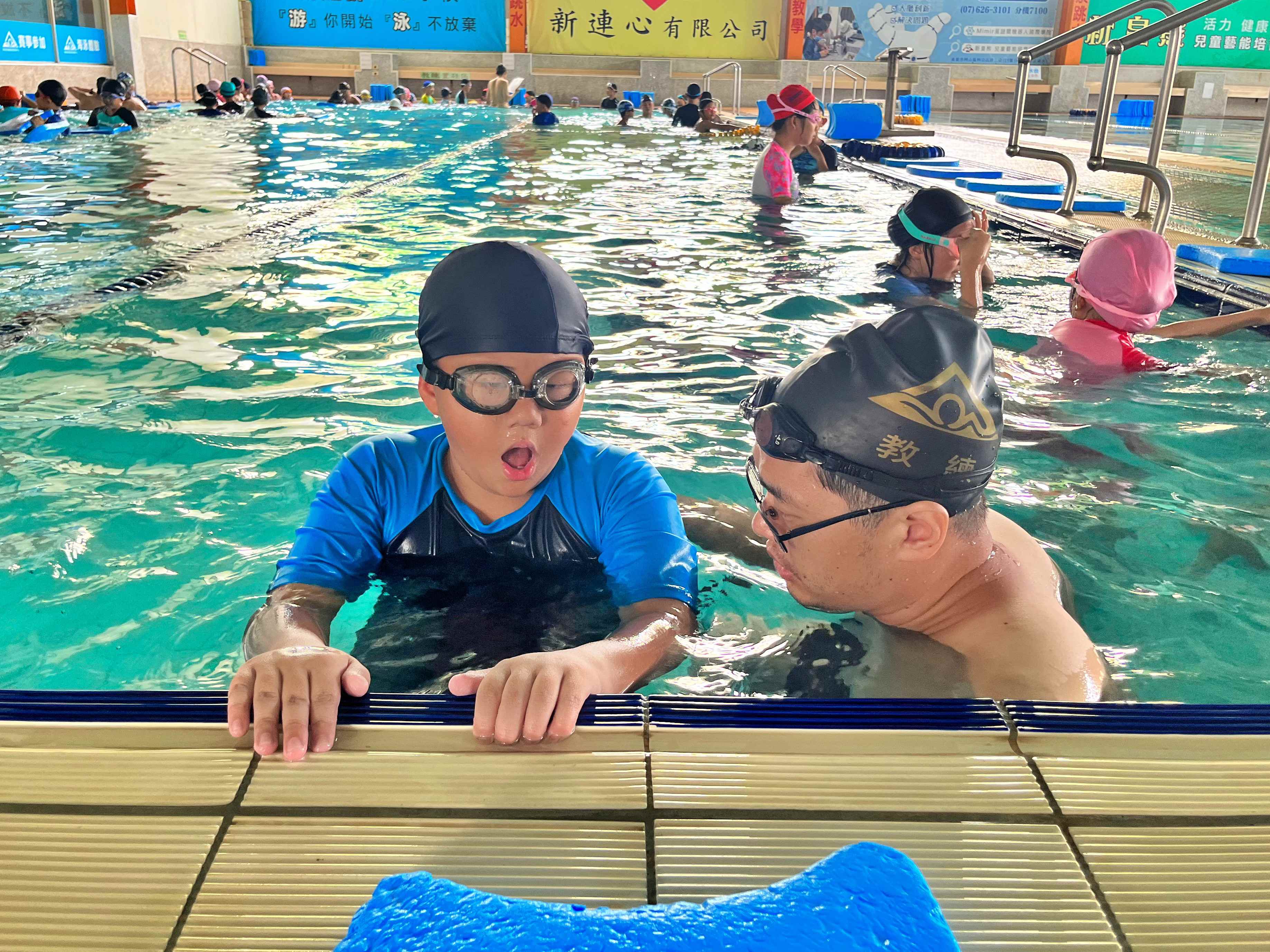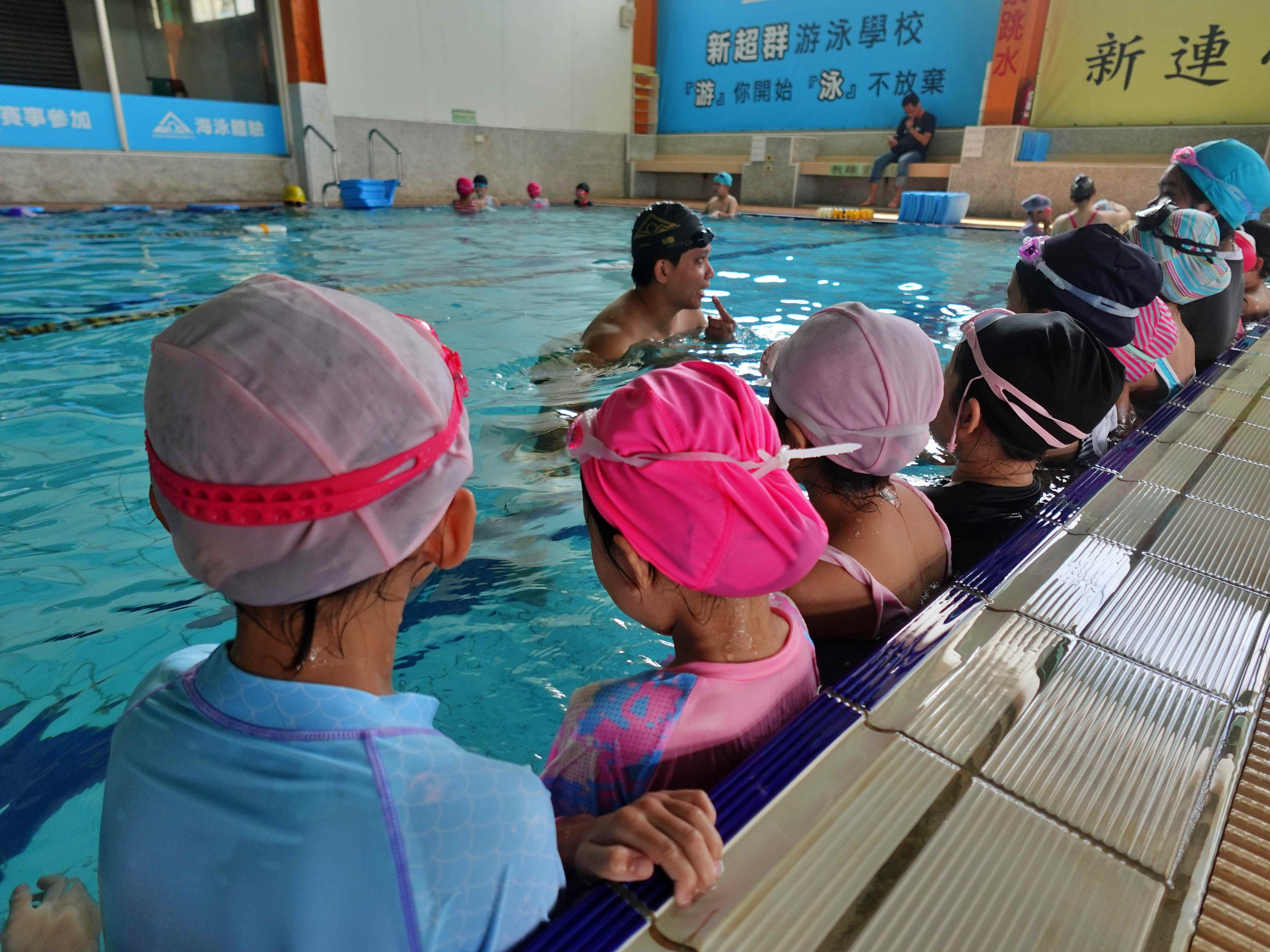讓學生可以在專業教練的指導下學習游泳技能,水水編發現有很多小朋友一開始非常怕水,到第二堂課時,已經可以在水中玩起剪刀石頭布