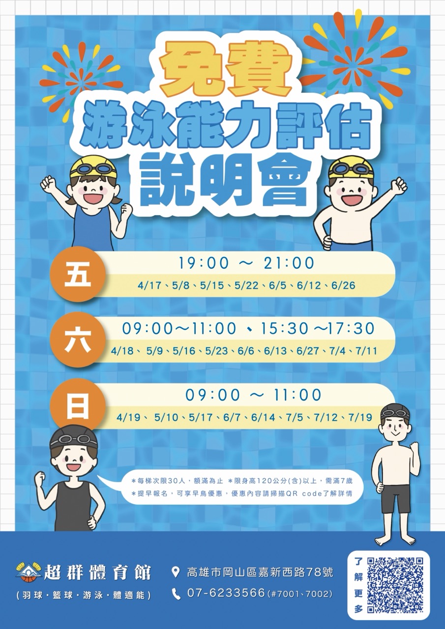 \ 2026年 免費游泳能力評估 開放預約中!/